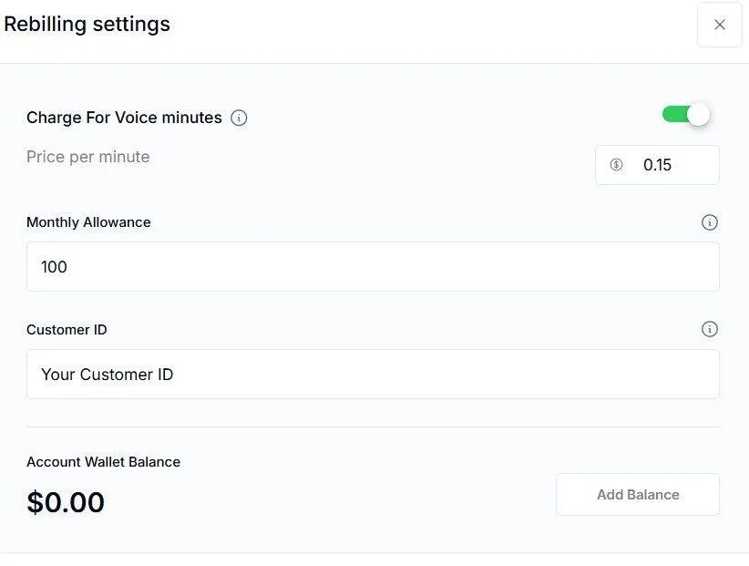 - Rebill AI Voice Minutes: Charge clients more than the base 7¢ per minute